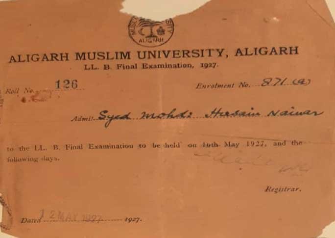 Another interesting fact that emerged from a careful perusal of his AMU documents is that Syed Sajjad Haider was the Registrar at the time. An alumnus of AMU himself, Mr. Haider was also a noted Urdu short story writer, travel writer, translator, and the father of Urdu author Quratulain Hyder.